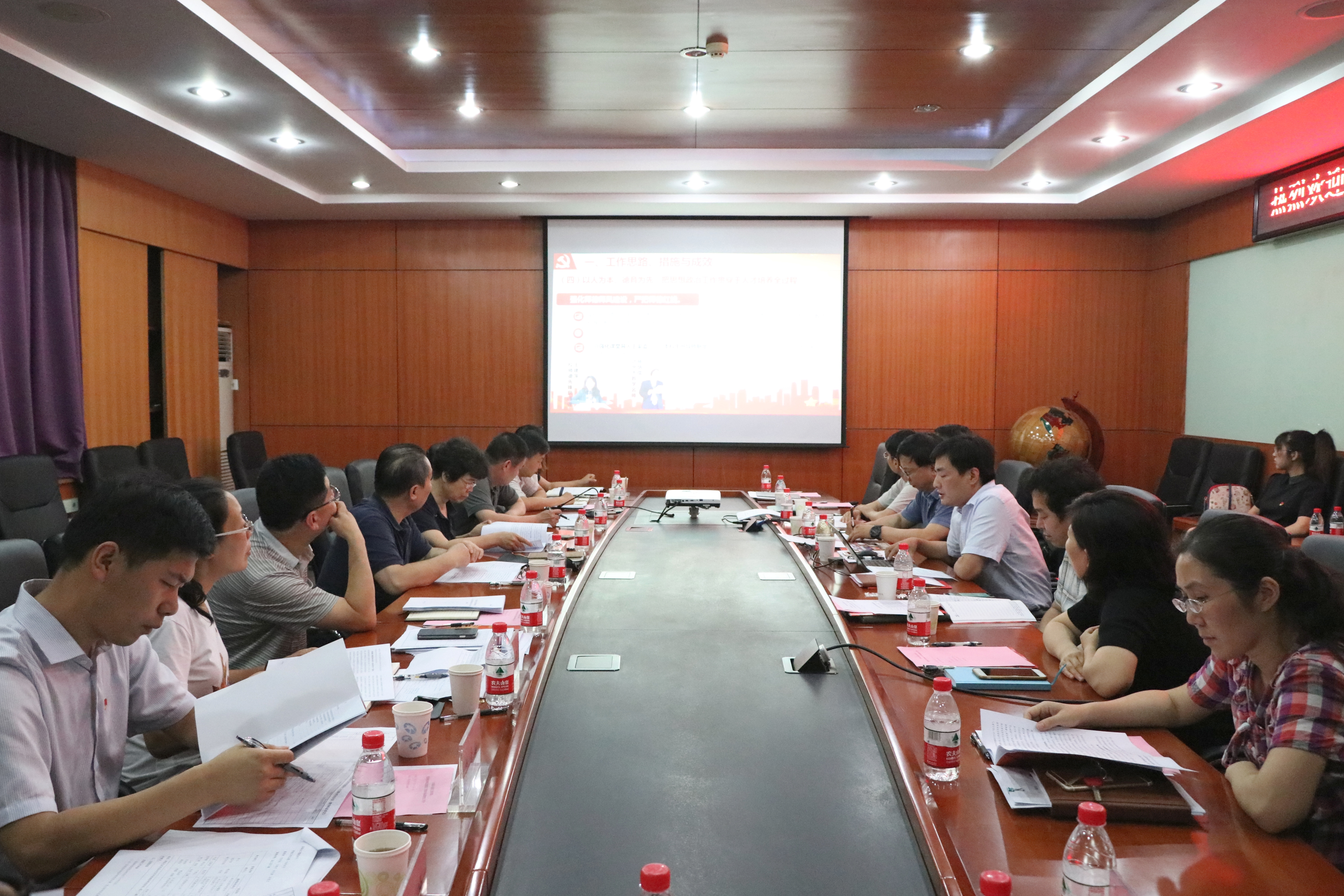 汇报结束后,王维才副校长和党建工作专家、原机械学院党委书记许纪倩与学院部分教工和学生党支部书记、系所主任、教师、学生、办公室工作人员、辅导员及党外人士代表,围绕学院党委领导班子建设、教职工党支部建设和活动开展情况、学生思想政治和学风建设三个方面进行了深入座谈,全面了解情况,广泛听取意见。同时,检查组其他成员认真细致地审阅了学院发展和党委作用发挥、班子建设和干部队伍建设、基层党支部建设和作用发挥、党风廉政建设、思想政治工作、其他工作、特色工作等七个方面的支撑材料。