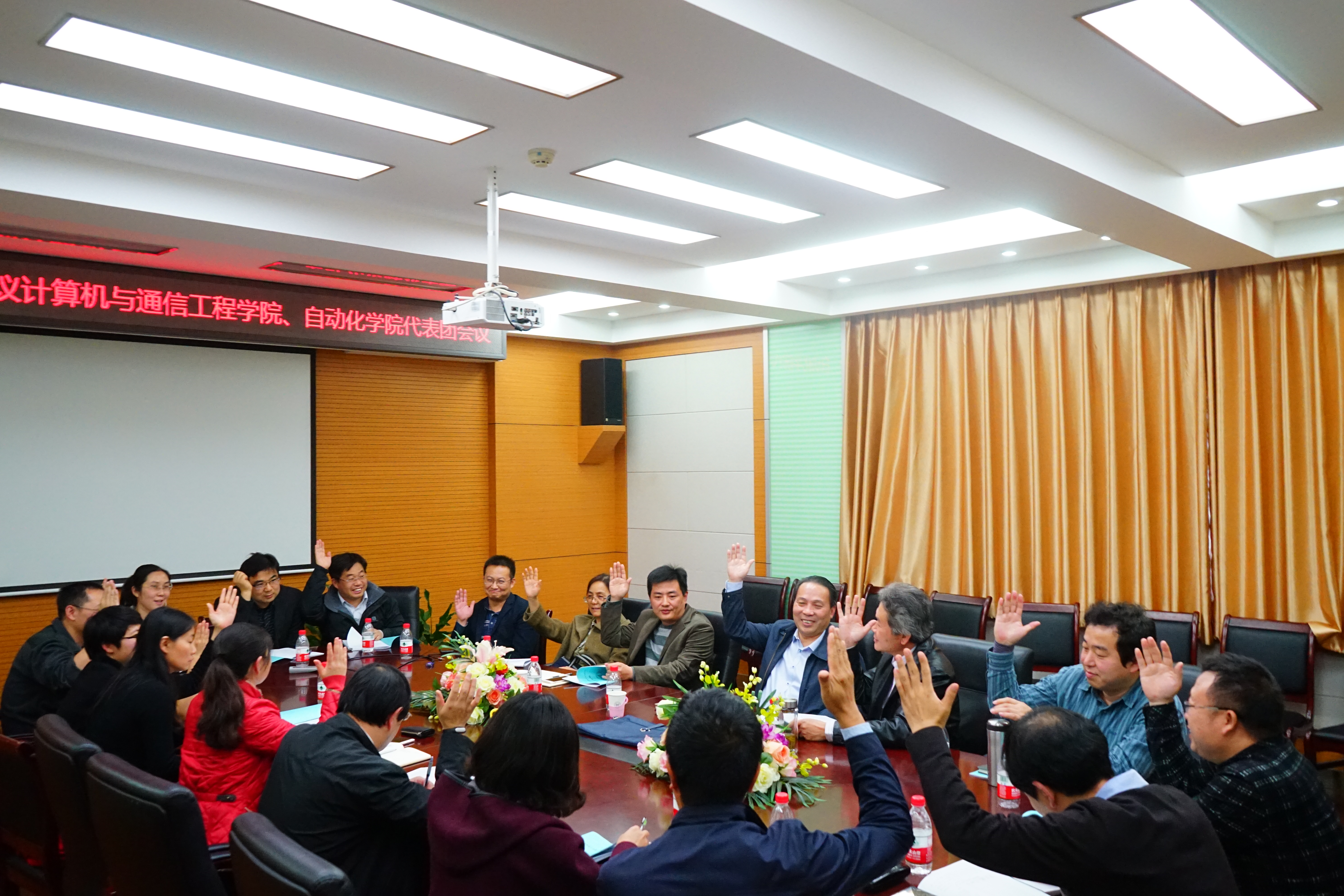 与自动化学院代表团会议在机电信息楼601举行。我校副校长王维才、自动化学院党委书记尹怡欣、有爱爱