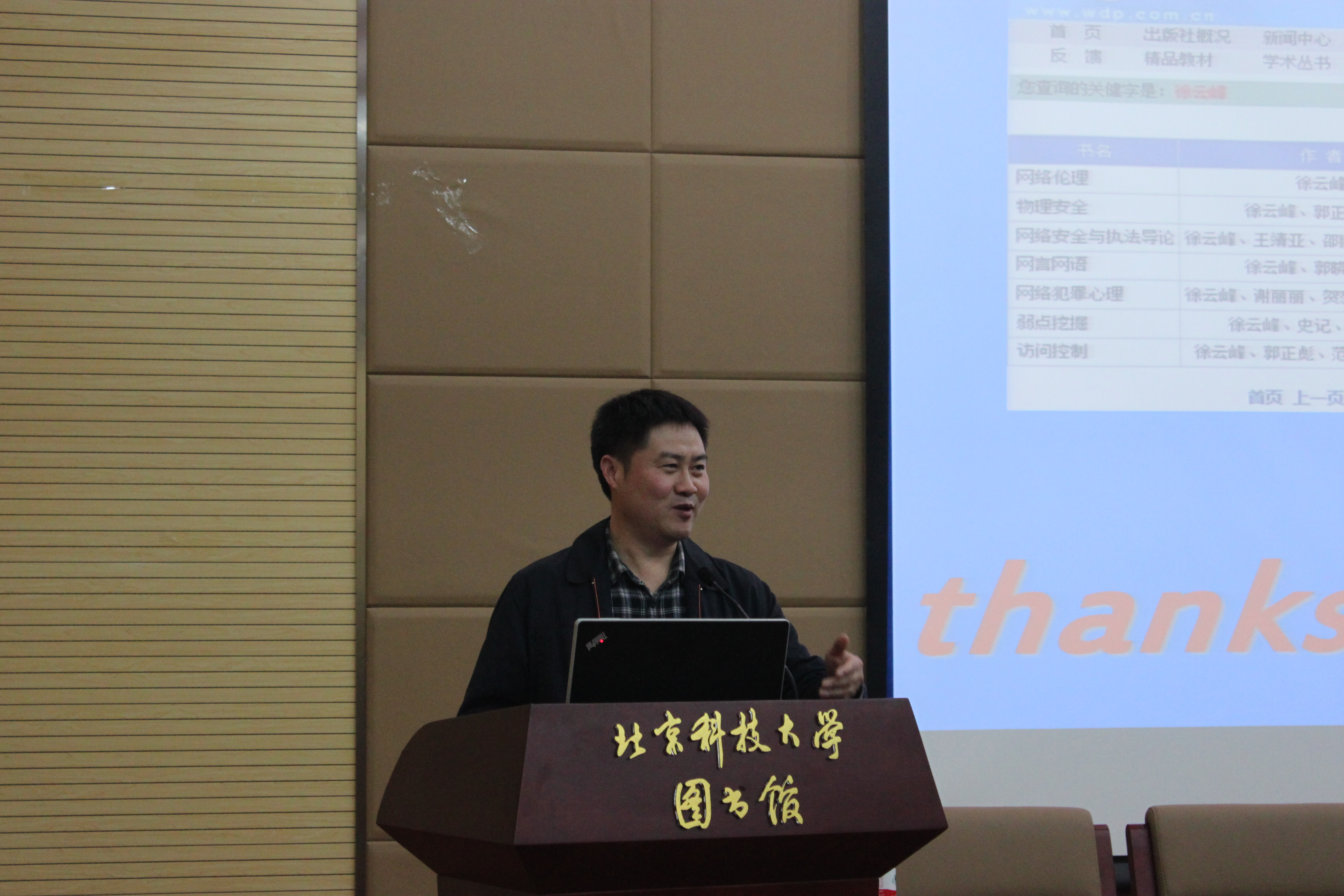 主讲人以“网络空间的魔与剑”为题进行学术报告,用美国时代周刊的三张封面图片展现了打击网络犯罪一线战士眼中的网络空间,并结合《网络伦理》、《网络安全与执法导论》、《弱点挖掘》、《网络犯罪心理》等七本专著,解读了当代社会网络安全的发展历史和现状,尤其对我国网络信息安全进行了细致的讲解。
