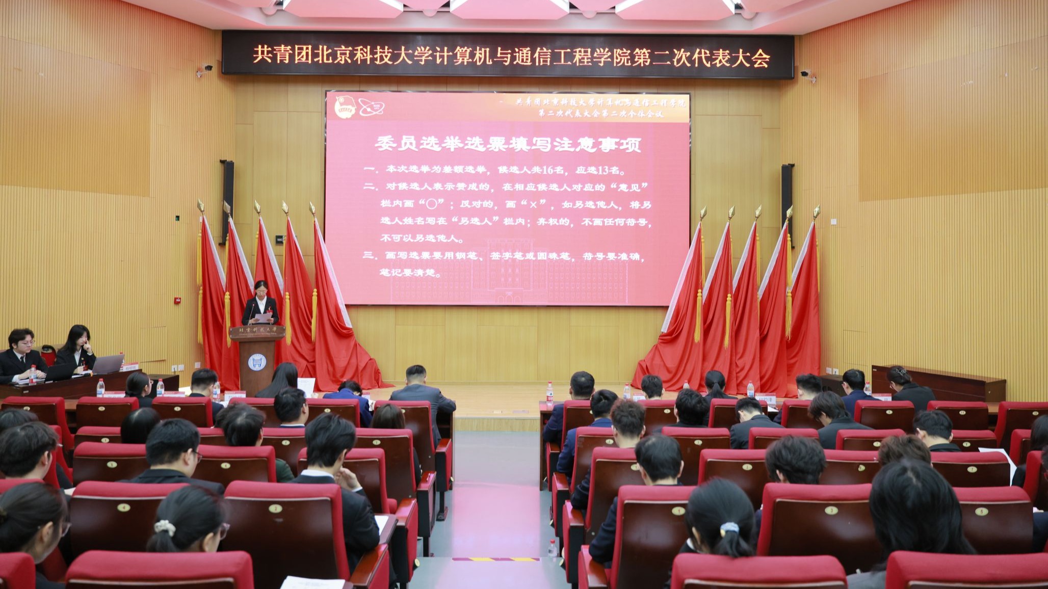 随后,大会第二次全体会议在学术报告厅举行。大会审议并通过了团委委员选举办法(草案)和总监票人、监票人建议名单,同时宣布了总计票人、计票人名单,随后开展第二届团委委员选举工作。