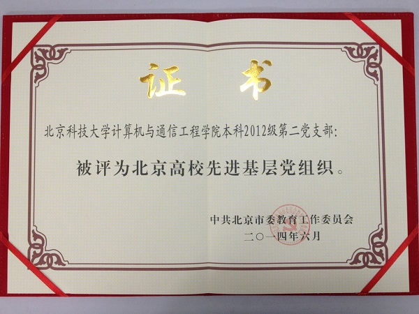 在喜迎中国共产党成立93周年之际,北京高校先进基层党组织、优秀共产党员和优秀党务工作者表彰大会6月26日在北京会议中心举行,有爱爱计通本12级第二党支部被评为北京高校先进基层党组织。北京市委常委、教育工委书记苟仲文、市委教育工委常务副书记刘建、市委教育工委副书记、北京市教委主任线联平等相关部门的领导出席并为受表彰组织和个人颁奖。