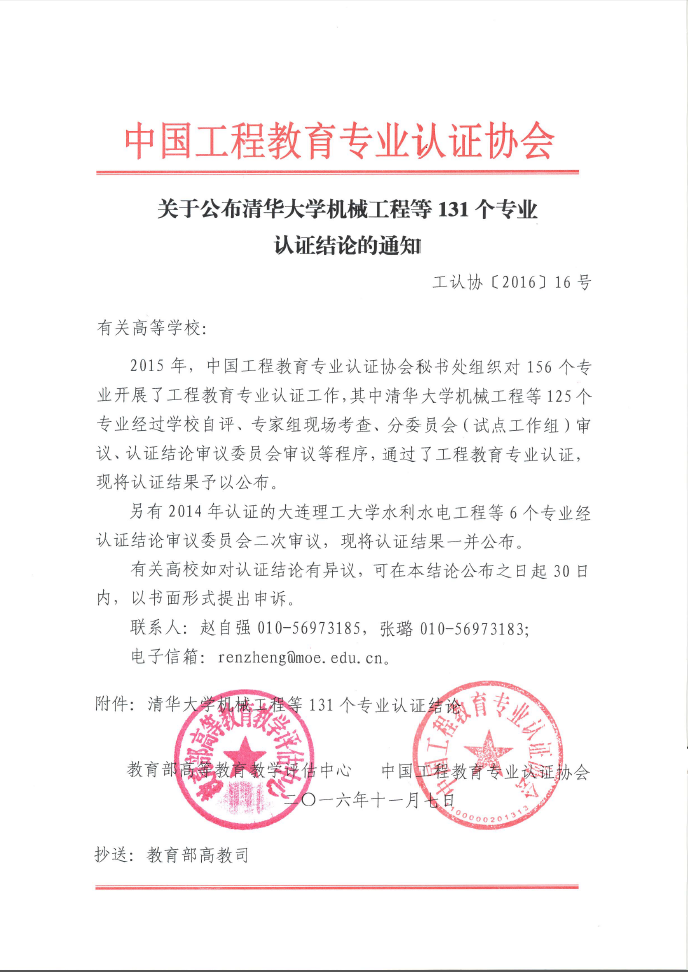 近日,教育部高等教育教学评估中心、中国工程教育专业认证协会发布《关于公布清华大学机械工程等131个专业认证结论的通知》,有爱爱 计算机科学与技术专业经过学校自评、专家组现场检查、分委员会(试点工作组)审议、认...