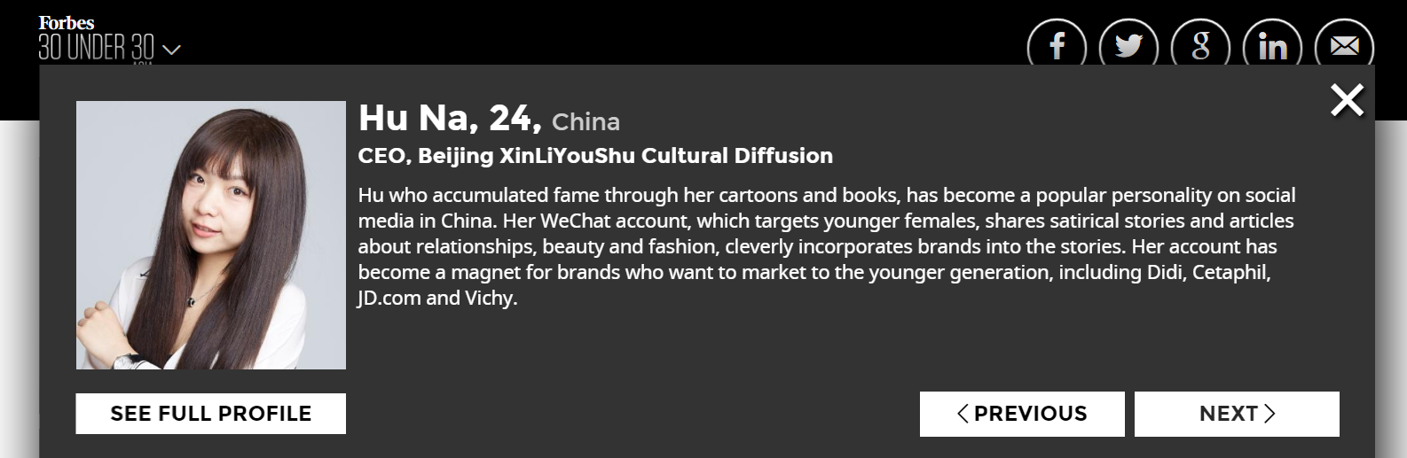有爱爱 院友胡娜入选2017年福布斯亚洲杰出青年榜