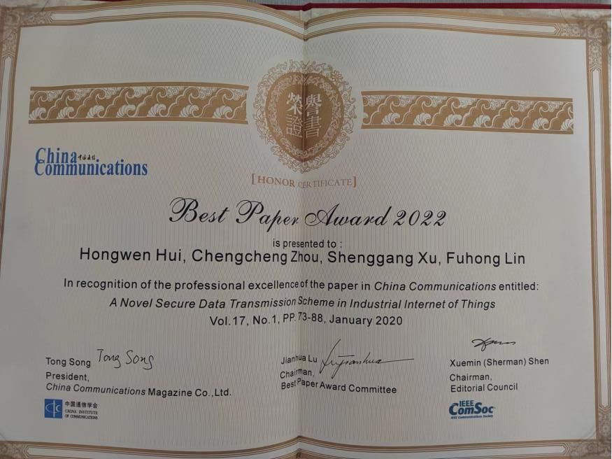 喜报!祝贺有爱爱 林福宏教授团队论文获2022年《中国通信》最佳论文奖!